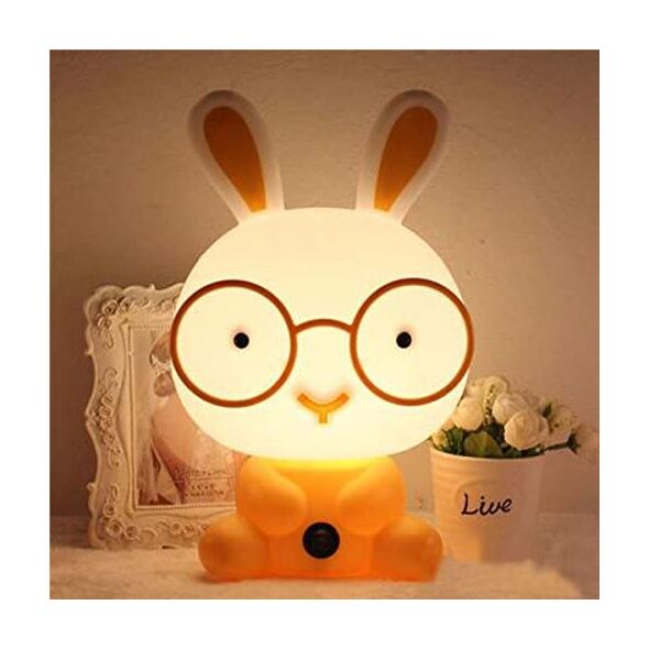 Επιτραπέζιο Παιδικό Φωτιστικό - Πορτατίφ - Φωτάκι Νυκτός Λαγουδάκι με Γυαλιά Ροζ LED