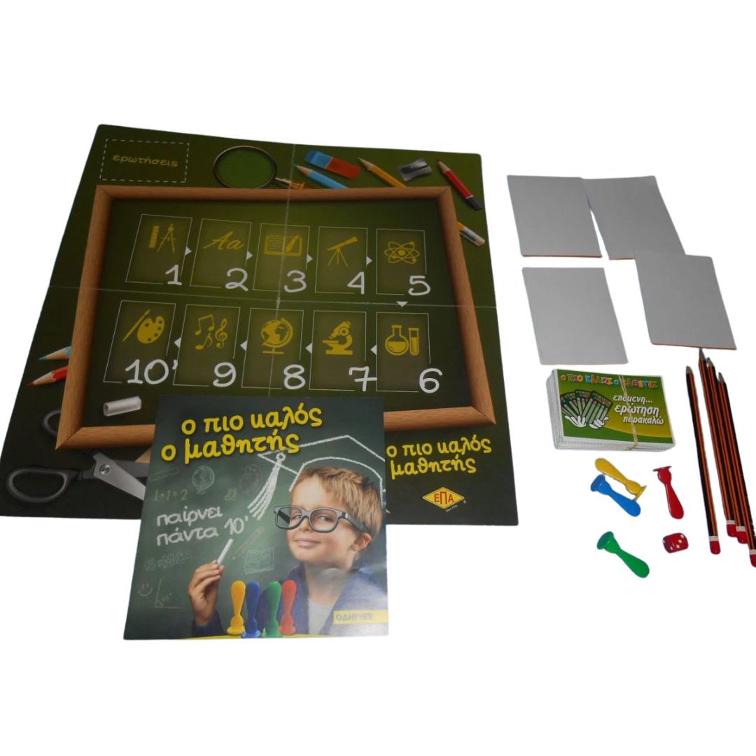 Το επιτραπέζιο παιχνίδι «Ο πιο καλός ο μαθητής» είναι ένα διασκεδαστικό παιχνίδι γνώσεων που προκαλεί τα παιδιά να απαντήσουν σωστά σε ερωτήσεις διαφορετικού βαθμού δυσκολίας και να αποδείξουν τις γνώσεις τους.