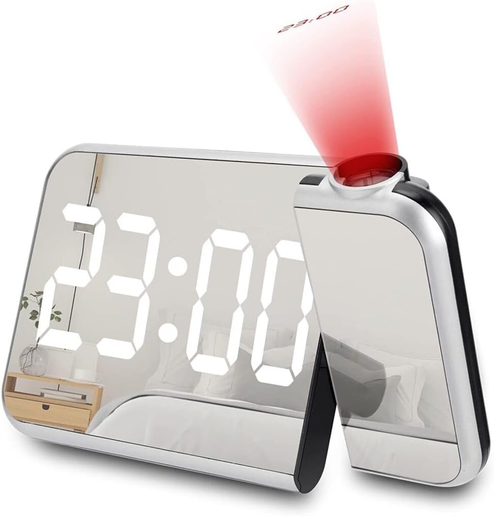 Επιτραπέζιο Ψηφιακό Ρολόι - Ξυπνητήρι Καθρέφτης με Προτζέκτορα