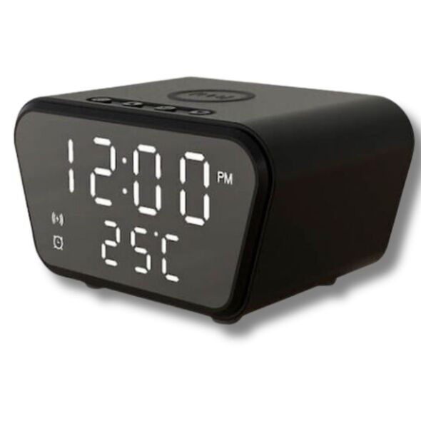 Επιτραπέζιο Ψηφιακό Ρολόι με Ξυπνητήρι & Ασύρματη Φόρτιση Μαύρο