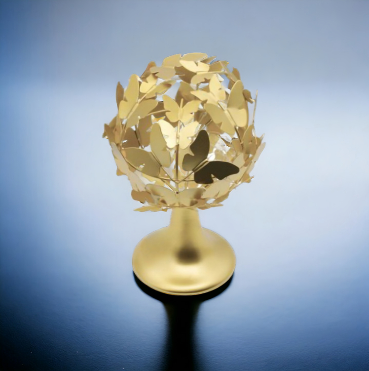 Επιτραπέζιο Χρυσό Διακοσμητικό Κηροπήγιο Ρεσό με Πεταλούδες