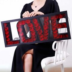 Βαλιτσάκι δώρου με ροζ τεχνητά τριαντάφυλλα που σχηματίζουν τη λέξη "LOVE". Υψηλής ποιότητας υλικά, ανθεκτική κατασκευή, και κομψός σχεδιασμός. Ιδανικό για ρομαντικά δώρα, τη γιορτή του Αγίου Βαλεντίνου και ξεχωριστές περιστάσεις. Διαστάσεις: 65,5x27 cm.