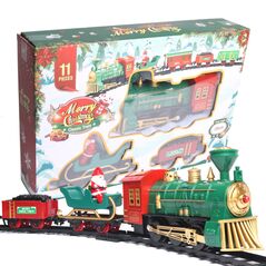 Γιορτινό χριστουγεννιάτικο τρενάκι με μουσική και κίνηση, σετ 11 τεμαχίων με ράγες και βαγόνια. Δημιουργεί μαγική ατμόσφαιρα κάτω από το δέντρο και αποτελεί ιδανικό δώρο για παιδιά και συλλέκτες.