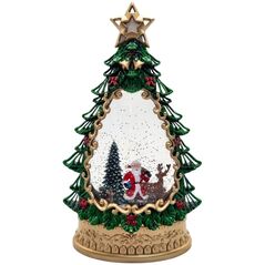 Χριστουγεννιάτικο φωτιζόμενο τρενάκι με Άγιο Βασίλη και δέντρο. Με glitter εφέ, αποχρώσεις κόκκινου, πράσινου και χρυσού. Ιδανικό για ράφι, τραπέζι ή δώρο, προσφέρει ζεστή και παραδοσιακή γιορτινή ατμόσφαιρα.