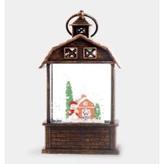 Φωτιζόμενο χριστουγεννιάτικο φανάρι σε χάλκινη απόχρωση, ιδανικό για γιορτινή διακόσμηση εσωτερικού χώρου. Κατασκευασμένο από ανθεκτικό γυαλί και ρητίνη, προσθέτει ζεστή λάμψη και μαγευτική ατμόσφαιρα. Τοποθετήστε το σε τραπέζια ή ράφια για να ζωντανέψει το πνεύμα των Χριστουγέννων στο σπίτι σας.