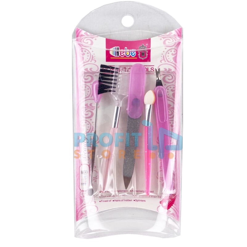 Ένα απίθανο σετ 5 τεμαχίων με διάφορα εργαλεία περιποίησης νυχιών, βλεφαρίδων και ματιών, το οποίο περιλαμβάνει μία λίμα, ένα σπρωχτήρι και ένα κόφτη για πετσάκια, ένα πινελάκι και μία χτένα για βλεφαρίδες.