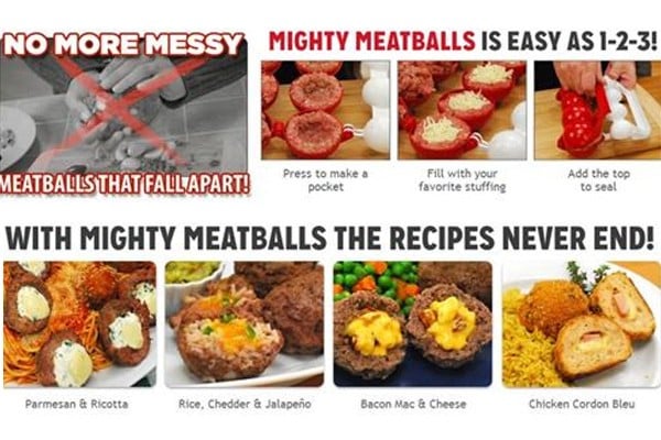 Με την συσκευή Mighty Meatballs μπορείτε να φτιάξετε εύκολα και γρήγορα τα αγαπημένα σας κεφτεδάκια με μία κίνηση. Η συσκευή είναι κατασκευασμένη από πλαστικό απαλλαγμένο από επιβλαβείς χημικές ουσίες. Με την συσκευή Mighty Meatball θα είστε σε θέση να φτιάξετε ή να γεμίσετε τα αγαπημένα σας κεφτεδάκια με αγαπημένα υλικά όπως λαχανικά, τυρί, σάλτσα ντομάτας κλπ.