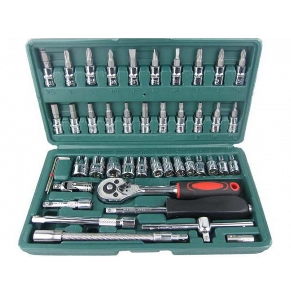 - Η εργαλειοθήκη αποτελείται συνολικά από 46 διαφορετικά τεμάχια και μπορείτε να την έχετε οπουδήποτε ενδέχεται να τη χρειαστείτε... Στο σπίτι, στο γραφείο ή ακόμα και στο αυτοκίνητο!