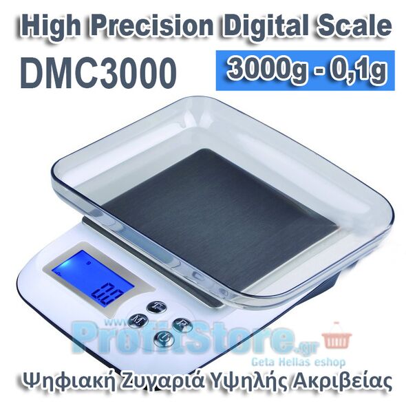 Εργαστηριακή Ψηφιακή ζυγαριά Υψηλής Aκριβείας και Υψηλής Ποιότητας. Μέτρηση από 0,1 του γραμμαρίου μέχρι και 3000gr. Πολύ λειτουργική, σε μικρό φορητό μέγεθος, είναι εξοπλισμένη με πλατφόρμα ανοξείδωτου χάλυβα και μεγάλη οθόνη LCD με οπίσθιο φωτισμό για εύκολη ανάγνωση.