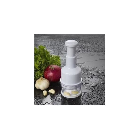 Κόψτε λαχανικά και φρούτα με ένα πάτημα. Τώρα, με το PRESS N CHOP, τεμαχίζετε ή ψιλοκόβετε τα πάντα, μέσα σε λίγα δευτερόλεπτα. Κόβει λαχανικά, φρούτα, ακόμα και ξηρούς καρπούς. Χτυπώντας το έμβολο μια φορά κατεβαίνουν 3 λεπίδες που τεμαχίζουν ό,τι έχετε τοποθετήσει από κάτω. Όσο ποιο πολλές φορές πιέσουμε,τόσο ποιο ψιλοκομένα γίνονται τα υλικά.