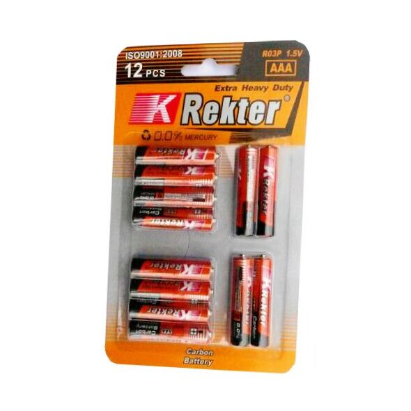 Extra Heavy Duty AAA Μπαταρίες, 1.5V, REKTER, σε συσκευασία Blister 12 τεμαχίων.