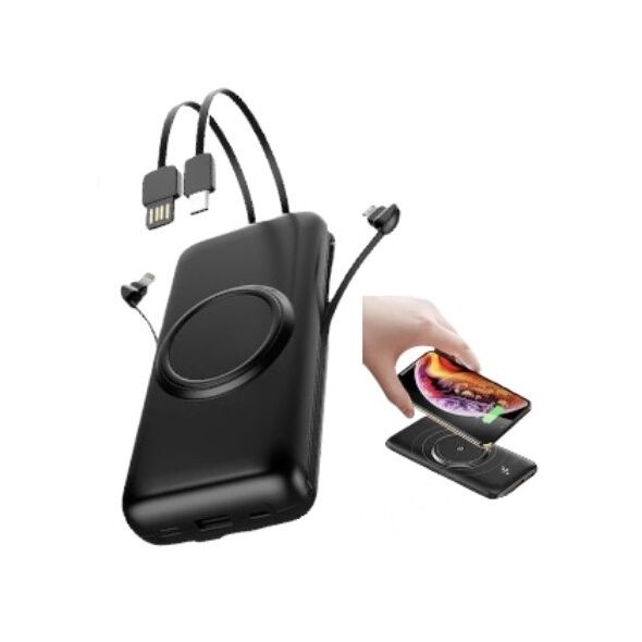 EZRA® Power Bank 10000mAh για Ασύρματη & Ενσύρματη Φόρτιση με 4 Διαφορετικά Ενσωματωμένα Καλώδια & LED Ένδειξη Μπαταρίας