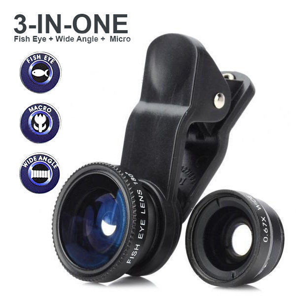 Φακοί FishEye, Wide, Macro με κλιπ για Κάμερα Kινητών - Universal Lens x3