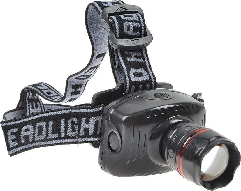 Φακός που στερεώνεται στο κεφάλι. Χαρακτηριστικά: Λάμπα: 1W + 4 Led, Ρύθμιζόμενη δέσμη, Ζουμ. Xρώμα: μαύρο. Ιδανικός για πεζοπόρους.