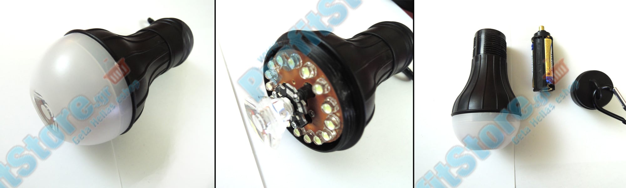 Διαθέτει 2 λειτουργίες ως φακός ισχυρής δέσμης με LED 3W - 200 Lumens και ως φωτιστικό με 16 ισχυρά LED.