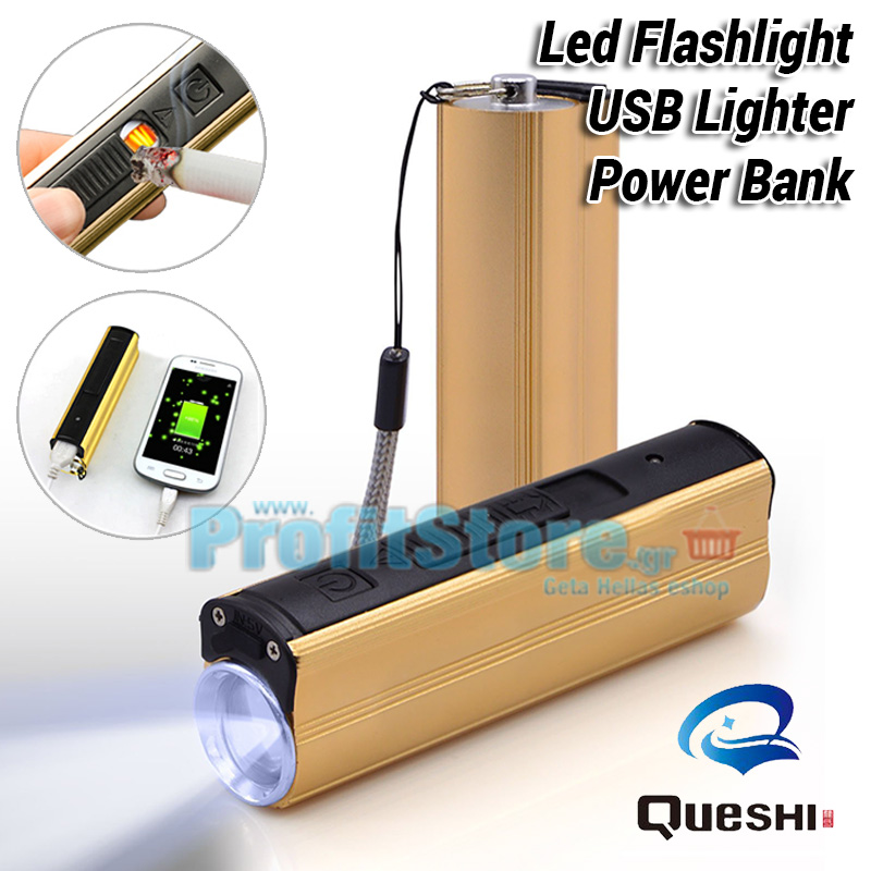 Φακός LED 200LM, Αντιανεμικός USB Αναπτήρας και Power Bank 3 σε 1