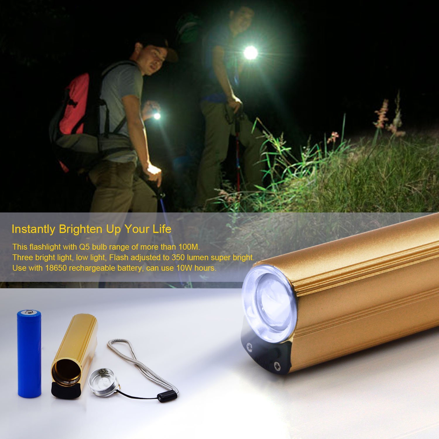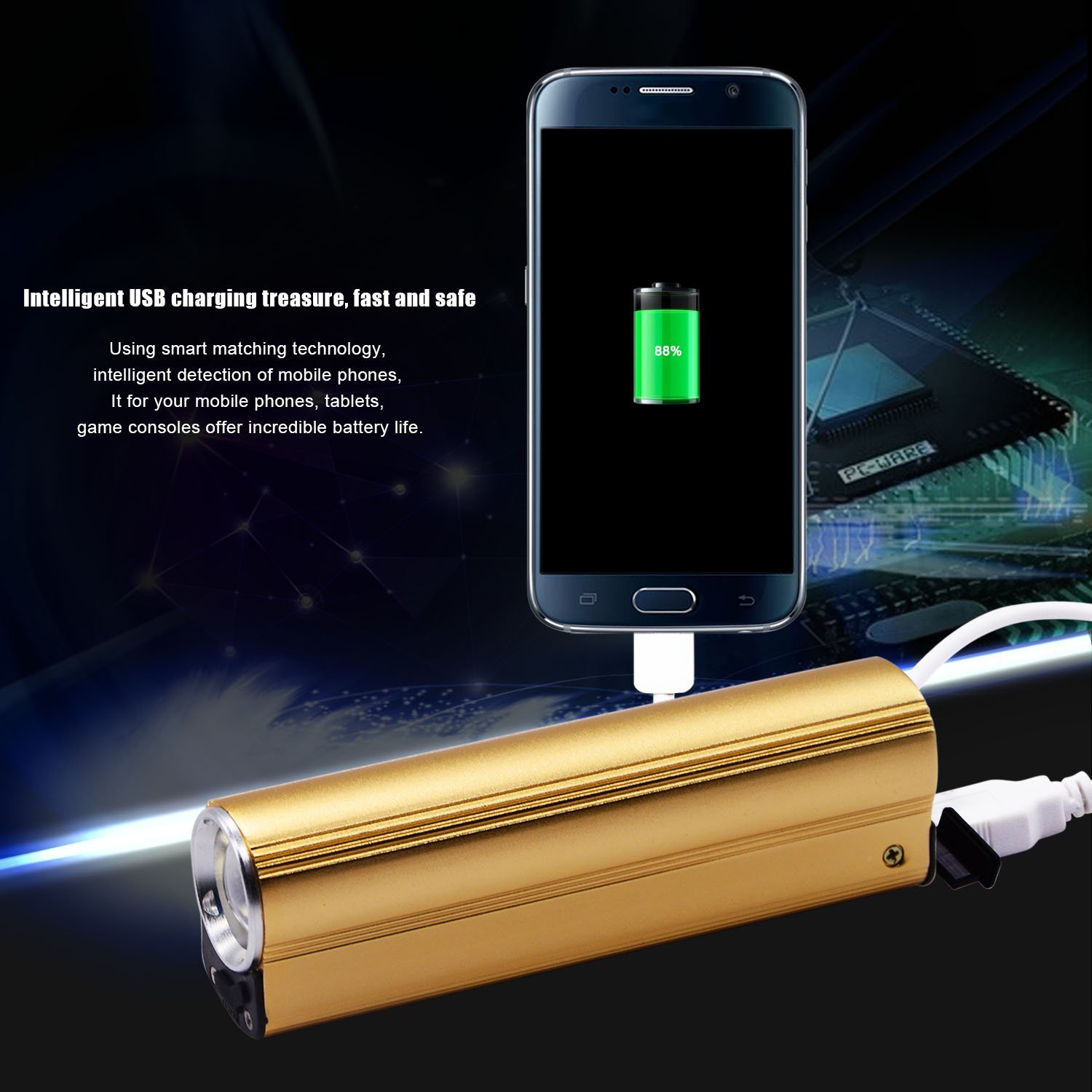 Είναι επαναφορτιζόμενο, χρησιμοποιεί μπαταρία 18650 ( περιλαμβάνεται ως δώρο στην συσκευασία ) για ευκολία στην αντικατάσταση και φορτίζει από οποιαδήποτε θύρα USB.