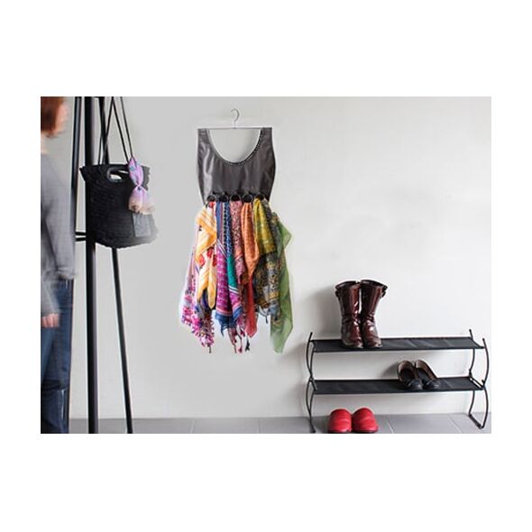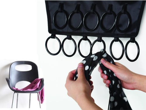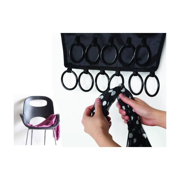 Καιρός να τα οργανώσετε και φυσικά με τη βοήθεια του απόλυτου fashion item. Το Hanging Scarf Organizer, δεν είναι φόρεμα, αλλά μία πρακτική θήκη με 16 κρίκους, την οποία μπορείτε να κρεμάσετε σαν ρούχο στην ντουλάπα σας ή πίσω από μία πόρτα, στον τοίχο και όπου αλλού θέλετε.