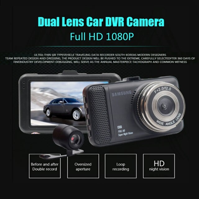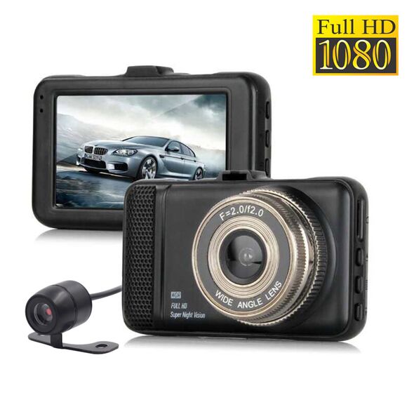 Αυτόνομη FHD Κάμερα - Καταγραφικό 1080p Αυτοκινήτου με Κάμερα Οπισθοπορείας, Ανιχνευτή Κίνησης, G-Sensor, Oθόνη 3'', Ευρυγώνιο Φακό 170ᵒ, Loop Recording