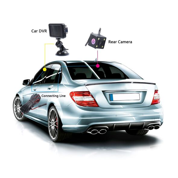 Αυτόνομη FHD Κάμερα - Καταγραφικό 1080p Αυτοκινήτου με Κάμερα Οπισθοπορείας, Ανιχνευτή Κίνησης, G-Sensor, Oθόνη 3'', Ευρυγώνιο Φακό 170ᵒ, Loop Recording