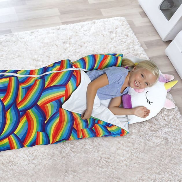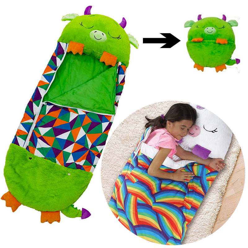 Πώς; Πολύ απλά! Όταν τον χρειάζεστε, απλώς ανοίγετε το φερμουάρ και τεντώνετε τον υπνόσακο. Το πάνω μέρος του λειτουργεί ως μαξιλάρι. Μετά τη χρήση του, διπλώστε τον και κλείστε το φερμουάρ, έτσι ο υπνόσακος μετατρέπεται πάλι στο αγαπημένο παιχνίδι του παιδιού σας.