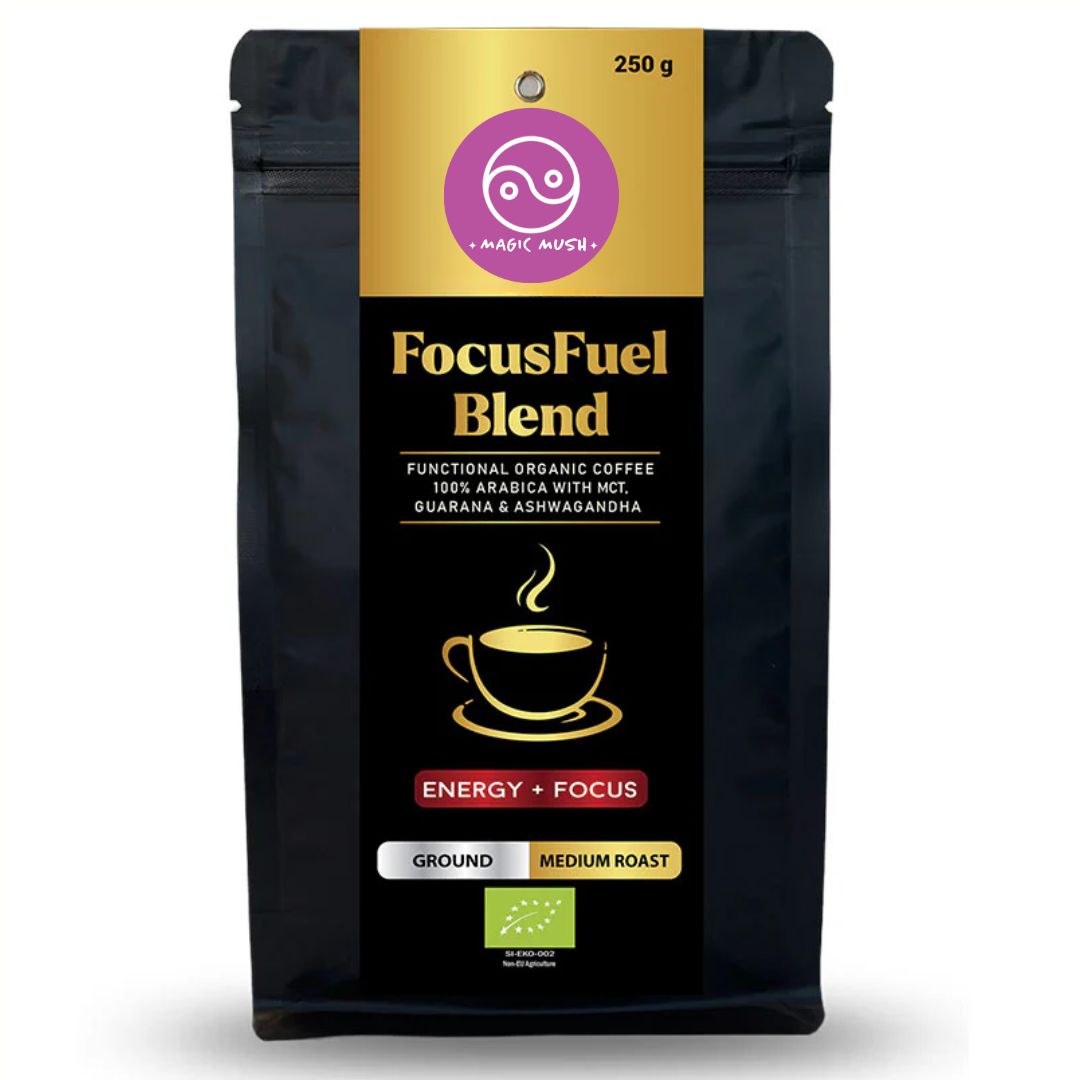 Ανακαλύψτε το FocusFuel Blend Coffee, έναν μοναδικό συνδυασμό βιολογικών κόκκων καφέ Arabica, εμπλουτισμένο με MCT έλαιο, γκουαρανά και ashwagandha, σχεδιασμένο για να ενισχύει την παραγωγικότητα και την ενέργειά σας καθ' όλη τη διάρκεια της ημέρας.