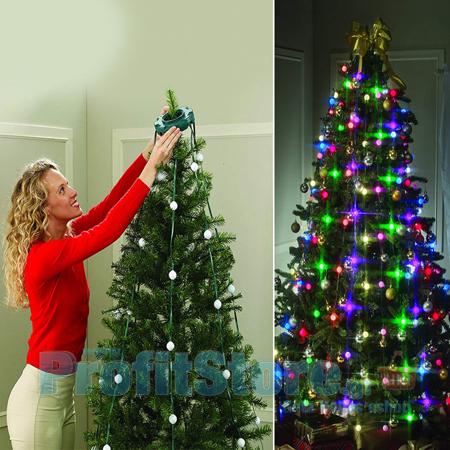 Φωτίστε το Χριστουγεννιάτικο δέντρο σας σε 1 λεπτό! Απλά φορέστε την στεφάνι στην κορυφή του δέντρου και τα λαμπάκια θα πέσουν κατακόρυφα και θα στολίσουν μαγικά το δέντρο σας!