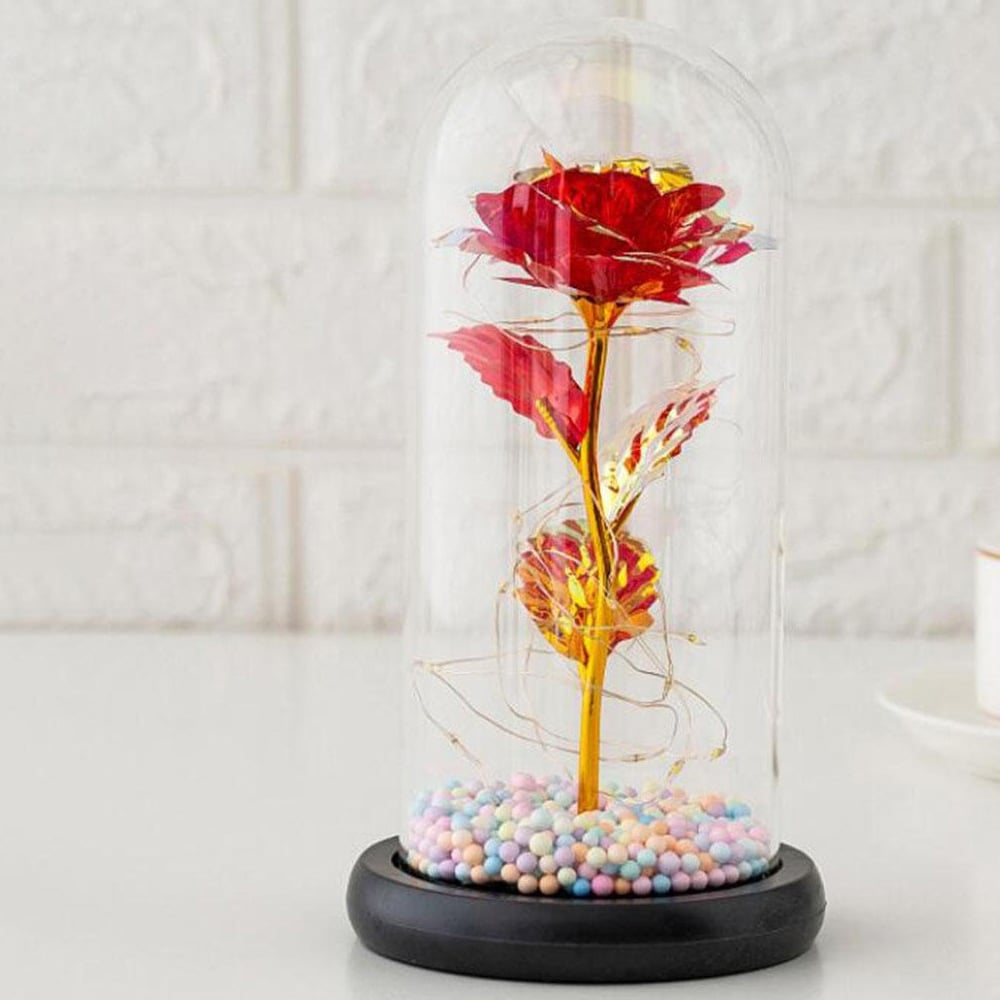 Forever Κρυστάλλινο Φωτιζόμενο Παντοτινό Τριαντάφυλλο σε Γυάλινο Βάζο με Πολύχρωμα LED Λαμπάκια - Κόκκινο