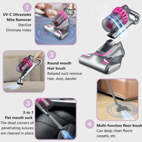Φορητή Ασύρματη Ηλεκτρική Σκούπα 4 σε 1 9000Pa 100W Ροζ - Γκρι