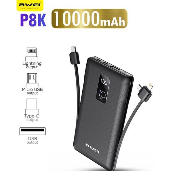Τώρα με την AWEI Power Bank P8K με χωρητικότητα 10000mAh, θα έχετε πάντα τη δύναμη να φορτίζετε κινητά τηλέφωνα, κάμερες, GPS, MP3 / MP4, Tablets και άλλες ηλεκτρικές συσκευές όπου κι αν βρίσκεστε.
