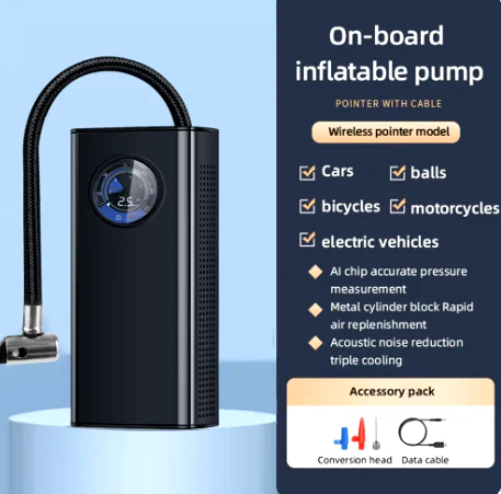 Χάρη στην ενσωματωμένη επαναφορτιζόμενη μπαταρία, λειτουργεί χωρίς καλώδια και παρέχει αξιόπιστη πίεση αέρα για λάστιχα αυτοκινήτου, ποδηλάτου, μπάλες και μικρά φουσκωτά.