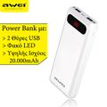 Φορητή Μπαταρία με 2 USB - Power Bank Awei P70K 20.000 mAh Dual LED Light Λευκό