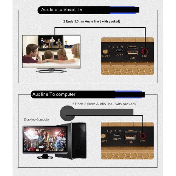 Μια πραγματικά πολυχρηστική συσκευή που μπορεί να παίξει τον ρόλο εξωτερικού ηχείου για τις αγαπημένες συσκευές ήχου και εικόνας, του κινητού σας τηλεφώνου, του υπολογιστή, του laptot ή του tablet σας, μπορεί να αναπαράγει την αποθηκευμένη σας μουσική σε κάρτες microSD ή σε στικάκια USB και να σας προσφέρει ατέλειωτες ώρες χαράς και διασκέδασης, σαν πλήρες σύστημα ΚΑΡΑΟΚΕ.