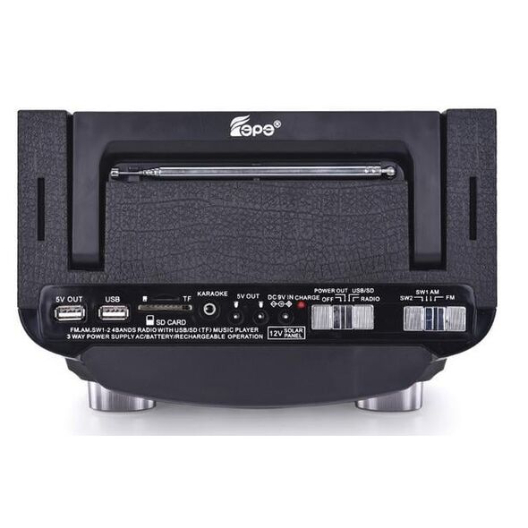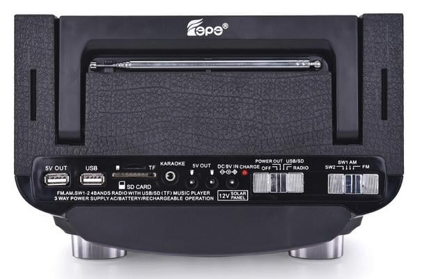 Με λειτουργίες HiFi 1500W AM / FM Radio USB / SD MP3 Music Player Solar και είσοδο καραόκε. Θα σας συντροφεύει παντού στο πάρτι, την παρέα, την παραλία, το ταξίδι, το γραφείο, στις διακοπές, τo κάμπινγκ.