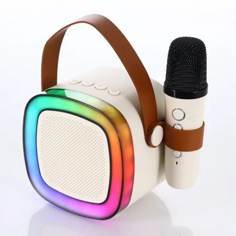 Φορητό Μίνι Ηχοσύστημα Bluetooth Καραόκε με Ασύρματο Μικρόφωνο Bluetooth Κρεμ
