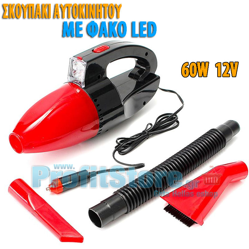 Φορητό Σκουπάκι Αυτοκινήτου 60W High-Power με Φακό LED Automobile Vacuum Cleaner Portable 12V για τον Αναπτήρα Αυτοκινήτου