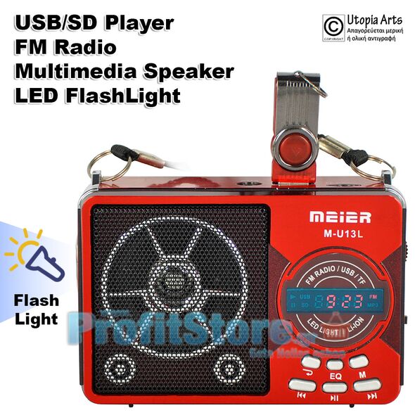 Φορητό USB/SD Mp3 Player Multimedia Speaker, FM Radio & Φακός LED MEIER M-U13L