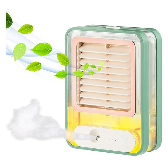Φορητός Ανεμιστήρας Ψύξης & Υδρονέφωσης Type C 4.5W με Spray Νερού Υδρονέφωσης, LED Φωτισμό, Κουμπί Αφής & 3 Ταχύτητες Αέρα Πράσινο