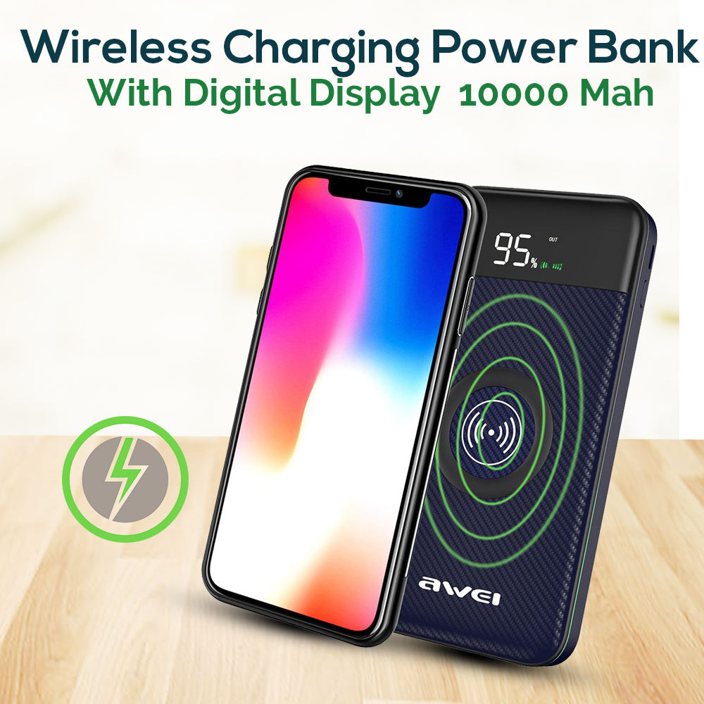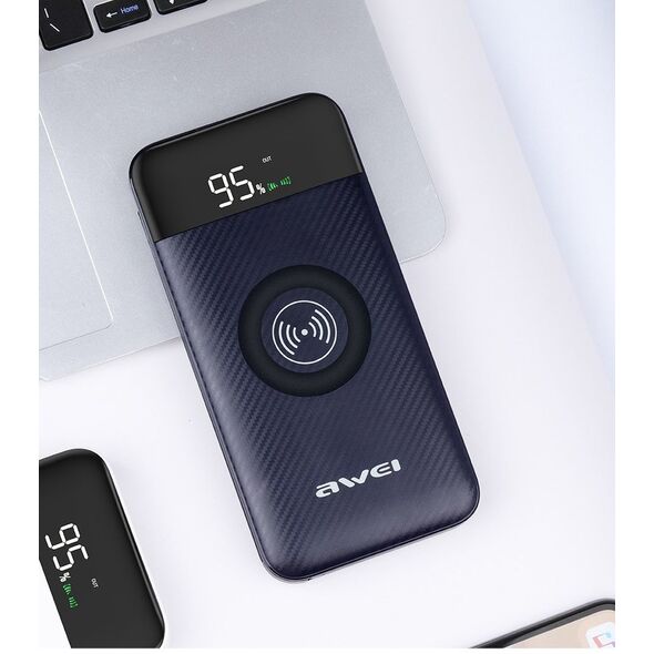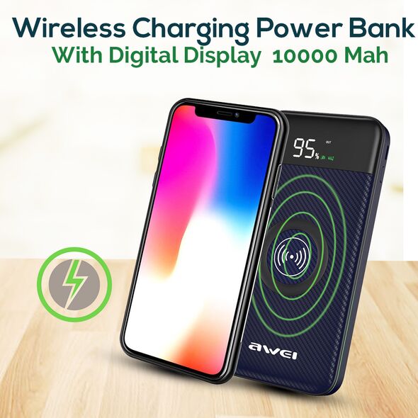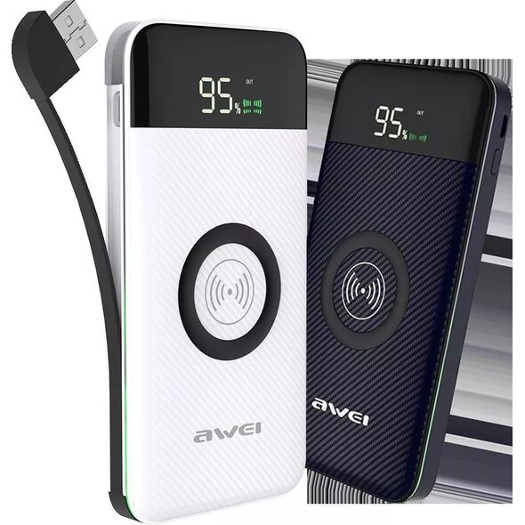 Φορητός Ασύρματος Φορτιστής - Power Bank Awei LCD Screen, USB/Micro USB, Port/Wireless Charging 10000mAh P71K