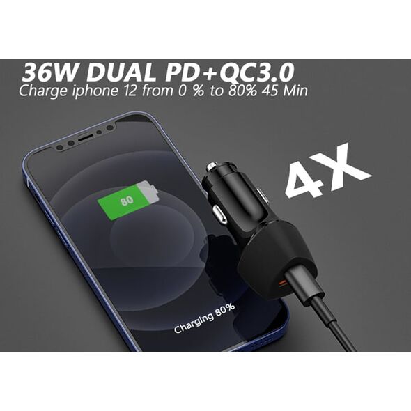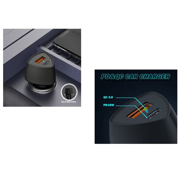 Φορτιστής Αυτοκινήτου Fast Charge με Δύο Εξόδους (USB & Type C) 38W Μαύρο