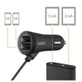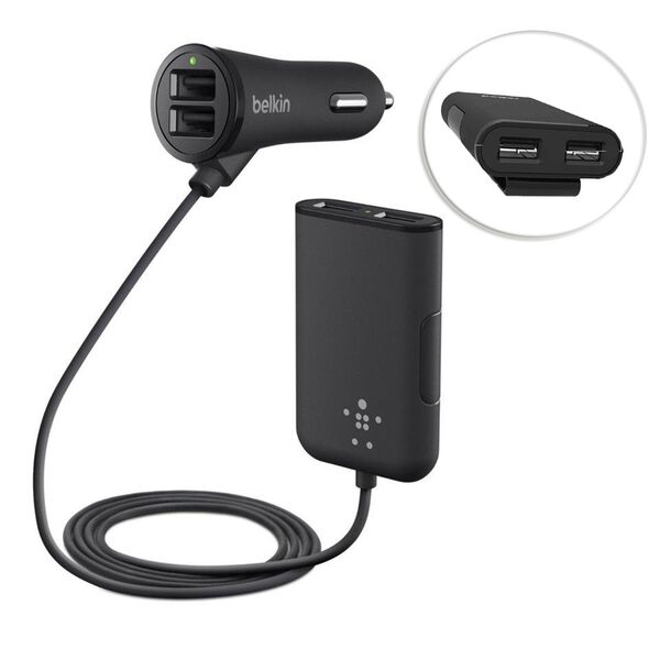 Φορτιστής αυτοκινήτου Belkin για επιβατικά αυτοκίνητα με 4 θύρες extended USB. Παρέχει 2 θύρες φόρτισης για τον οδηγό και τον συνοδηγό στον αντάπτορα για τον αναπτήρα και 2 θύρες USB στον αντάπτορα στο καλώδιο επέκτασης για τους επιβάτες στα πίσω καθίσματα.