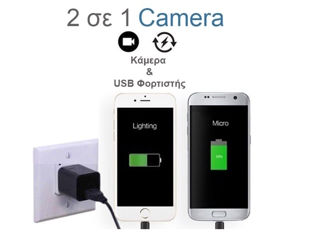 Φορτιστής Κινητού με Κρυφή Κάμερα Full HD USB