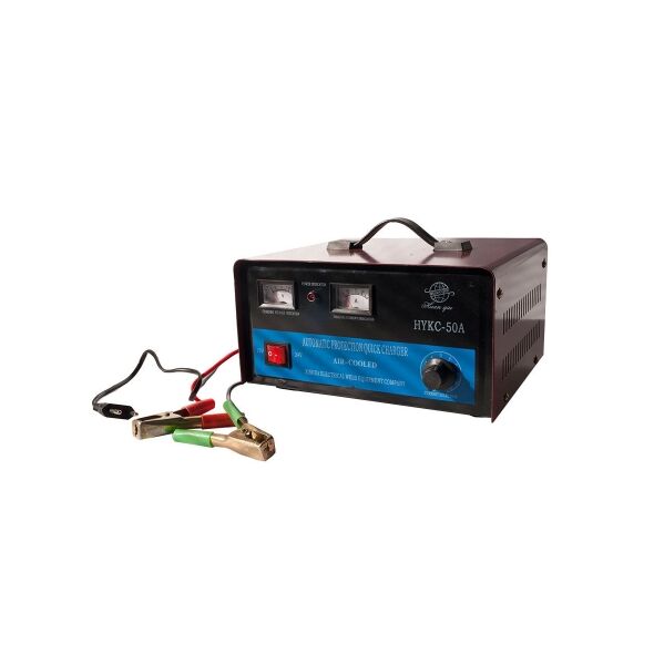 Αναλογικός φορτιστής μπαταριών 6V, 12V & 24V . Υψηλής ποιότητας αυτόματος ανορθωτής μπαταριών HYKC-50A. Είναι πολύ πρακτικό – επιτρέπει τη φόρτιση τόσο των μπαταριών αυτοκινήτων 12V όσο και των συσσωρευτών που χρησιμοποιούνται σε μοτοσικλέτες, τρακτέρ, σκούτερ, σκάφη, μερικά ηλεκτρικά παιχνίδια, λάμπες αλογόνου κ.λπ.