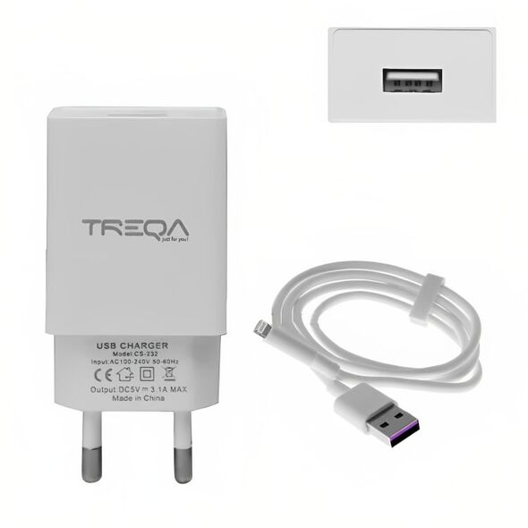 Φορτιστής Ταχείας Φόρτισης με 1 Θύρα USB 3.1A και Καλώδιο Lightning - Treqa