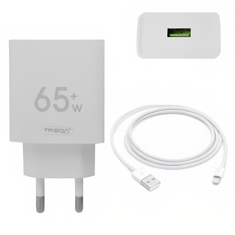Φορτιστής Ταχείας Φόρτισης με 1 Θύρα USB 4.5A 65W και Καλώδιο Lightning - Treqa