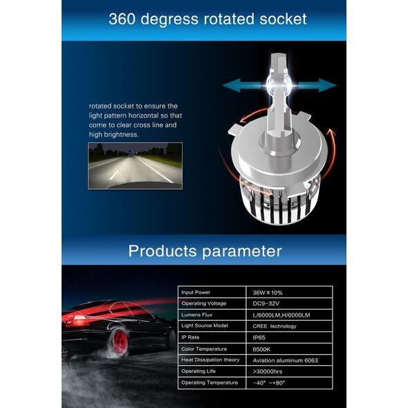 - Το CREE LED kit H4 / 6500Κ προσφέρει στο αυτοκίνητό σας τη δυνατότητα να φωτίζει άψογα και να απολαμβάνετε οδήγηση με δυνατό καθαρό φως (12.000 LM) και κυρίως με ασφάλεια! Με μόλις 72W κατανάλωση, καταφέρνουν να εντείνουν τον φωτισμό του οχήματος προσφέροντας τη μέγιστη ασφάλεια στην οδήγηση ιδιαίτερα κατά τις βραδινές ώρες, αφού φωτίζουν άψογα, ενώ η απόλυτα κάθετη προσαρμογή τους κατανέμουν σωστά το φως με αποτέλεσμα περισσότερο φωτισμό στο δρόμο από κοινές λάμπες.