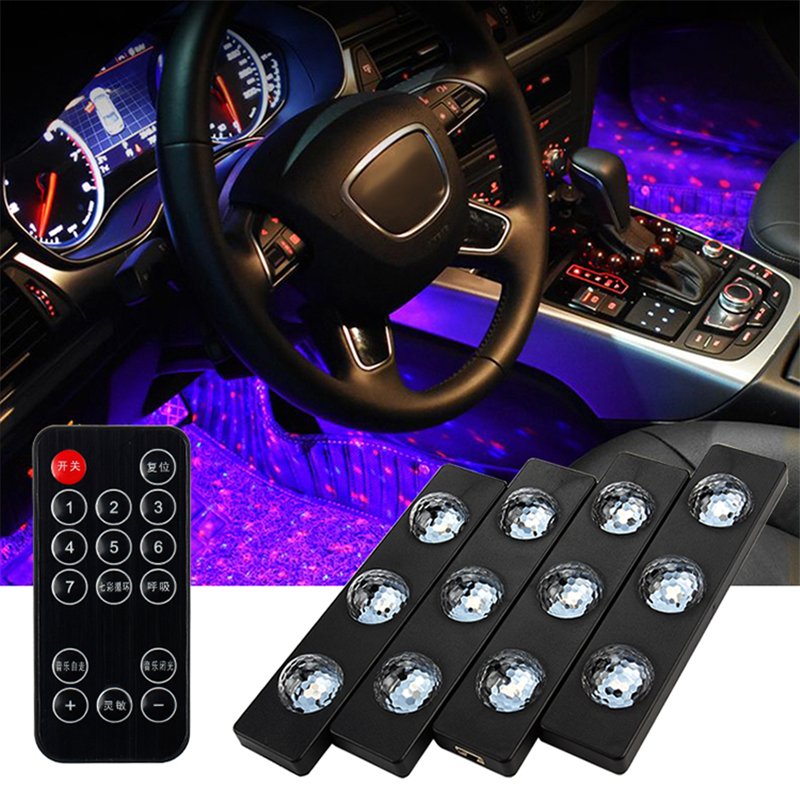 4x RGB Εσωτερικός Διακοσμητικός Φωτισμό Αυτοκινήτου με Τηλεχειριστήριο - Φωτορυθμικό Disco - Starlights of Car Seat Bottom USB