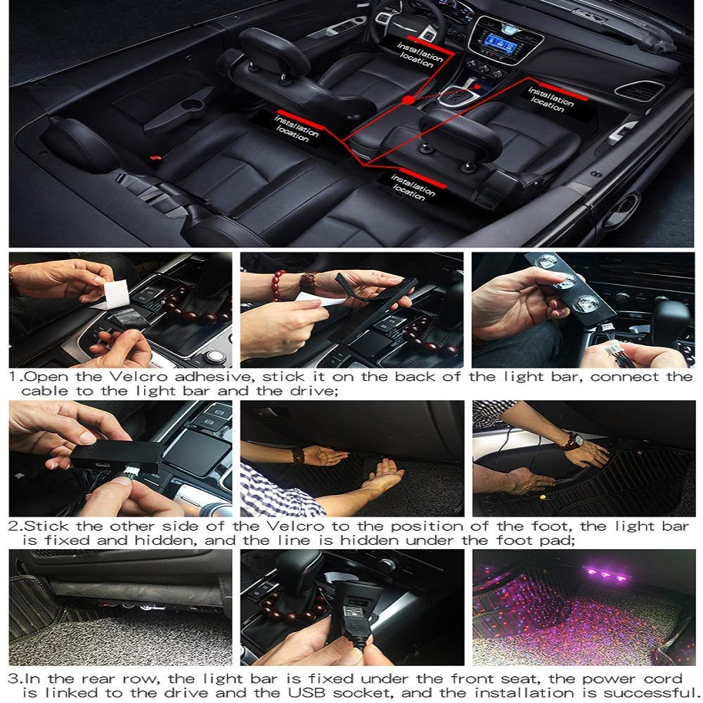 Τα φώτα LED εσωτερικού χώρου αυτοκινήτου είναι πολύ εύκολα στην εγκατάσταση. Στην συσκευασία θα βρείτε 4 ζευγάρια Velcro (σκρατς) με αυτοκόλλητα στο πίσω μέρος, ώστε να μπορείτε να το εγκαταστήσετε εύκολα χωρίς καμία ζημιά στο αυτοκίνητό σας. Για εγκατάσταση, απλώς καθαρίστε καλά το σημείο εγκατάστασης πριν κολλήσετε σταθερά τα φώτα.
