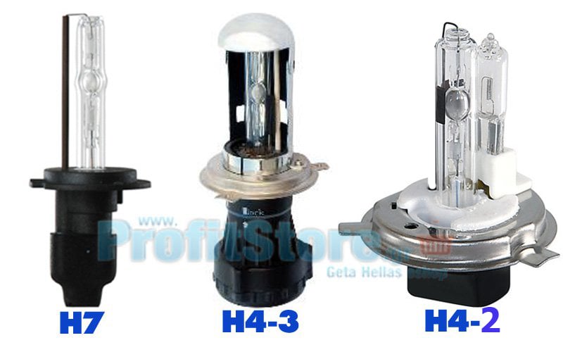 - Με λυχνίες HID H4-2 διπλής λυχνίας. Λυχνία HID για την μεσαία σκάλα (6000K) και λυχνία αλογόνου (4.000K) για την μεγάλη σκάλα. Το πιο σωστό σύστημα για την μετατροπή H4, με δυνατή και λειτουργική μεγάλη σκάλα.