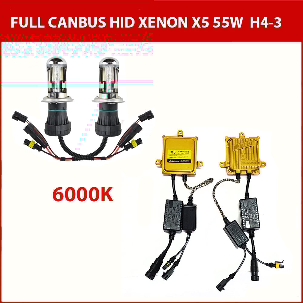 Αντικαταστήστε τους κοινούς λαμπτήρες, με φώτα xenon H4-3 X5 6000Κ 55W Full Can-Bus και απολαύστε την οδήγηση με το δυνατό και καθαρό λευκό φως χωρίς να εξαντλείται η μπαταρία του αυτοκινήτου σας!